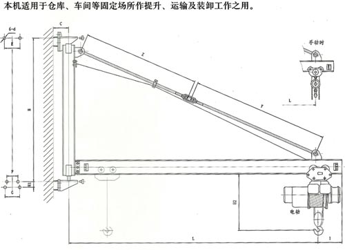 QX型墻式旋臂起重機(jī)適用于倉庫、車間等固定場(chǎng)所作提升、運(yùn)輸及裝卸工作之用。